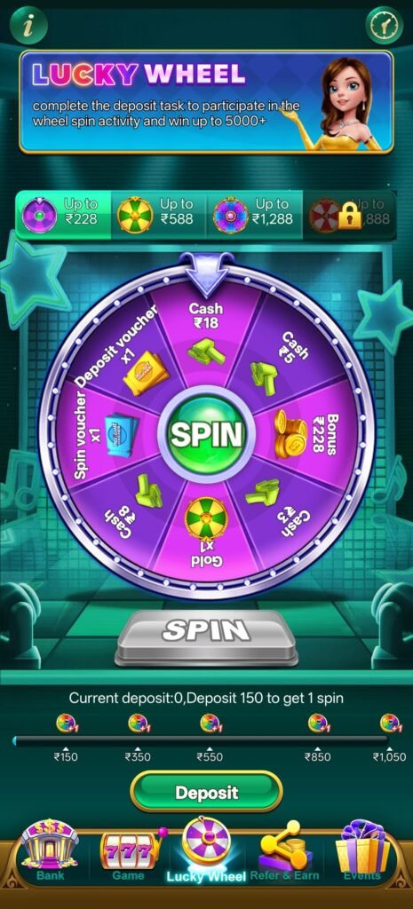 🎡 Lucky Wheel – ₹150 Deposit पर Spin