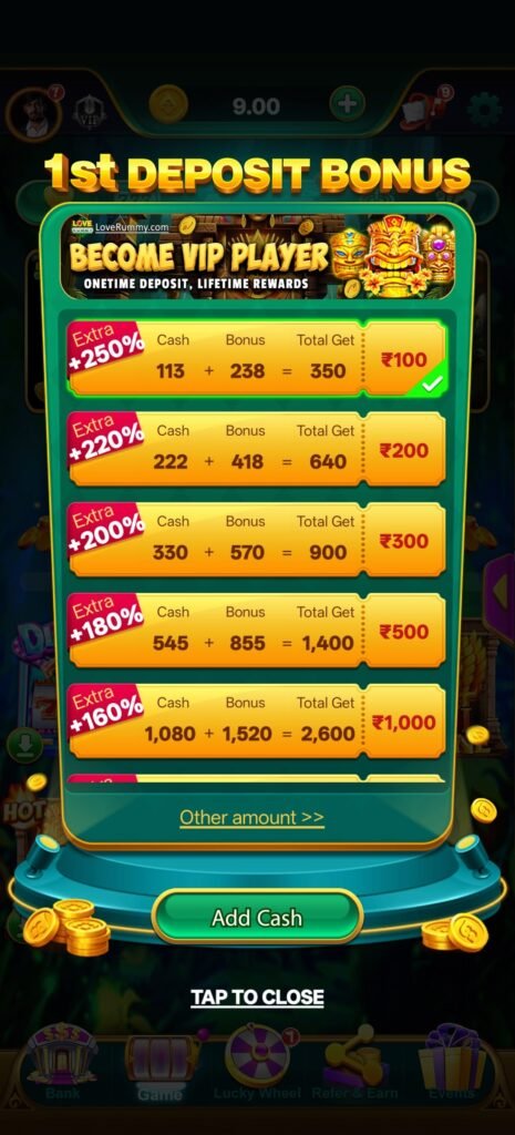 आज के time में users सिर्फ fast rewards नहीं चाहते, बल्कि ऐसा platform चाहते हैं जहाँ gameplay smooth हो, rewards consistent हों और experience repetitive न लगे। Love Rummy इसी mindset को target करता है। यहाँ ₹8 से ₹100 तक का welcome bonus user को शुरुआत में ही एक positive push देता है, जिससे gameplay instantly शुरू हो सकता है।