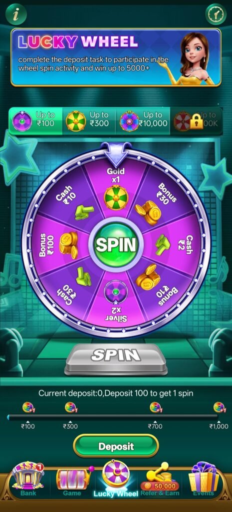 🎡 Lucky Wheel – ₹100 Deposit पर Spin