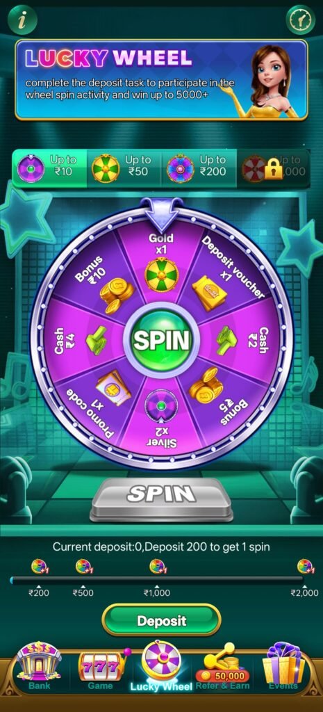 🎡 Lucky Wheel – ₹200 Deposit पर Spin
