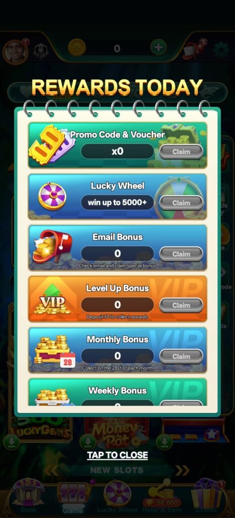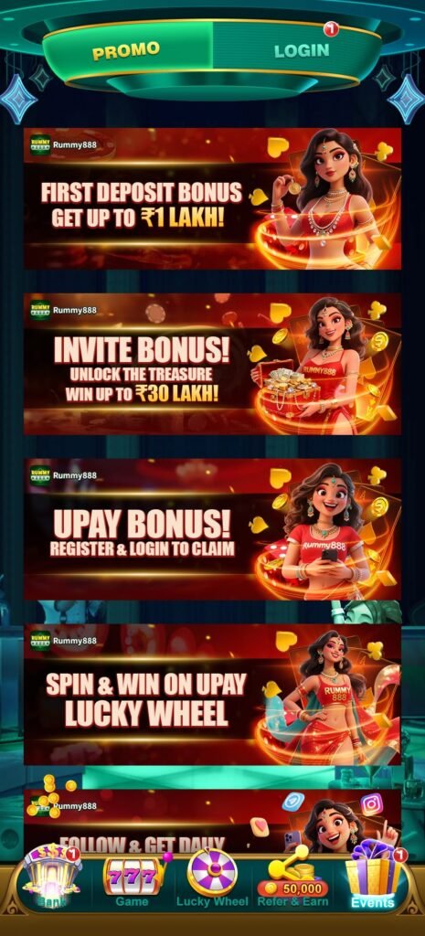 इसके साथ login gift, lucky gullak, lucky wheel (₹55 deposit पर), rewards today और promo system मिलकर एक ऐसा ecosystem बनाते हैं जहाँ user रोज थोड़ा-थोड़ा आगे बढ़ता है और धीरे-धीरे strong position में पहुँचता है।