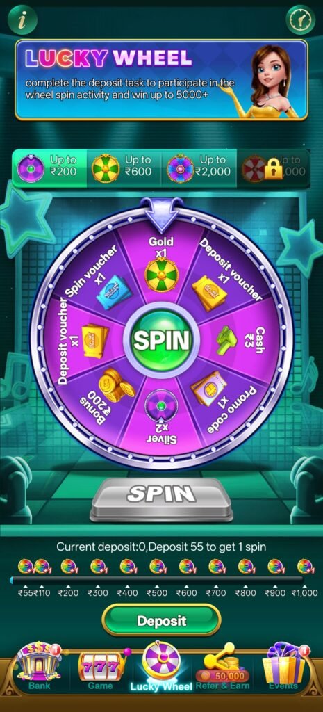 🎡 Lucky Wheel – ₹55 Deposit पर Spin