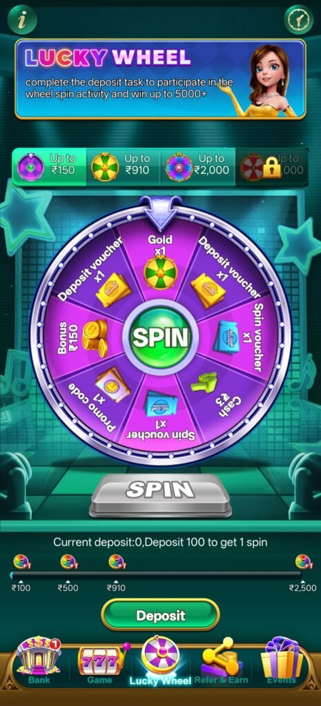 ₹100 deposit पर 1 spin मिलता है