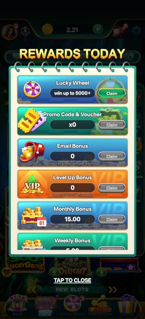 इसके साथ lucky gullak, lucky wheel, rewards today, task-like engagement और promo system मिलकर एक ऐसा ecosystem बनाते हैं जहाँ हर दिन खेलने का एक reason बनता है।