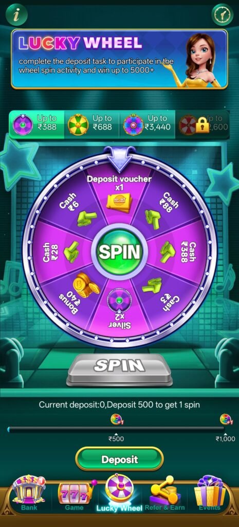 🎡 Lucky Wheel – ₹500 Deposit पर Spin