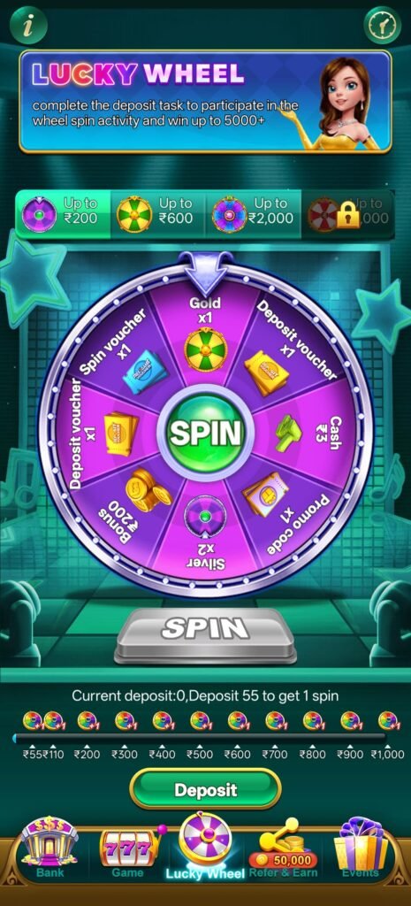 🎡 Lucky Wheel – 55 Deposit पर Spin Chance