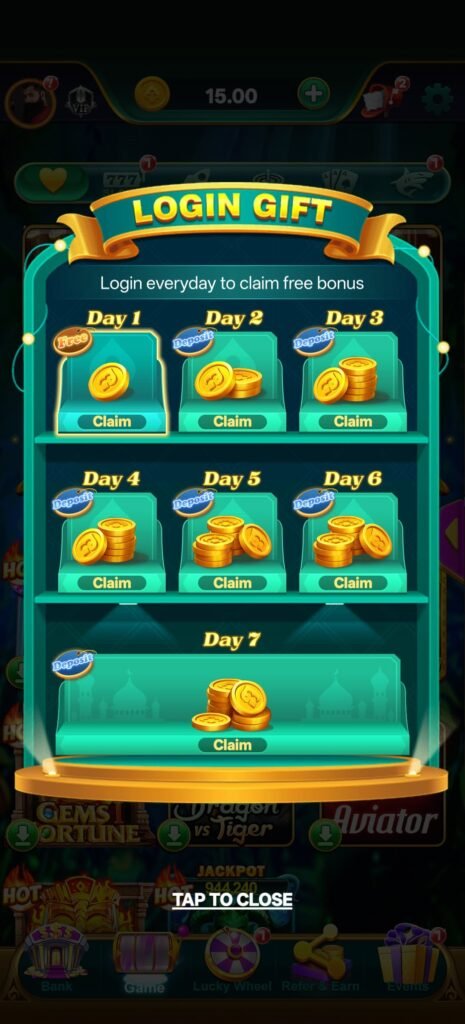 regular features जैसे login gift, lucky wheel और rewards today user को लगातार active रखते हैं
