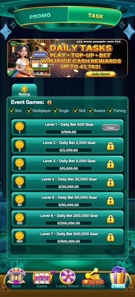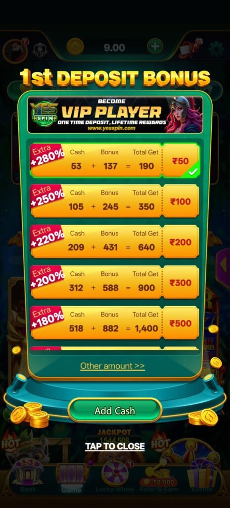 आज के competitive gaming world में users सिर्फ खेलना नहीं चाहते—वे चाहते हैं कि उनका हर action उन्हें आगे बढ़ाए। Yes Spin इसी सोच को target करता है। Welcome bonus ₹8 से ₹107 तक मिलना शुरुआत से ही user को एक flexible entry देता है, जहाँ हर player अपने हिसाब से start कर सकता है।