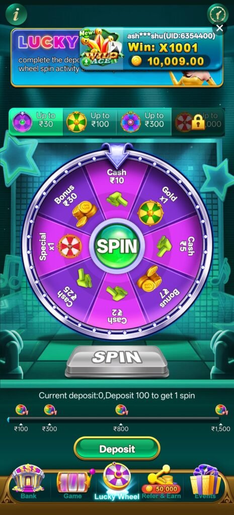 🎡 Lucky Wheel – ₹100 Deposit पर Spin