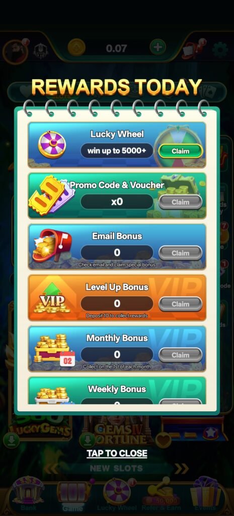 task, rewards today और lucky features मिलकर user को लगातार active रखते हैं