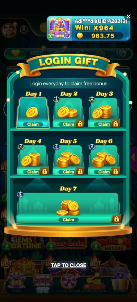 हर login पर extra reward मिलने से user को daily फायदा मिलता है।