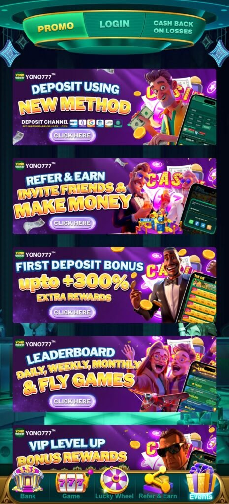 Yono 777 का deposit system clearly progressive है: