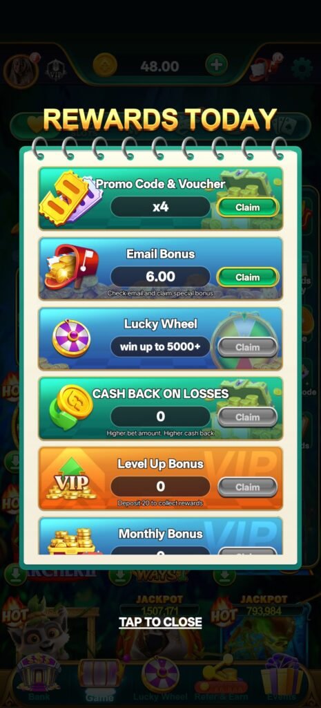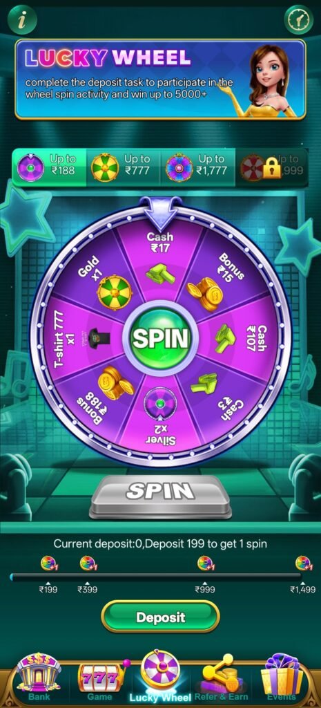 इसके साथ login gift, lucky gullak, lucky wheel (₹199 deposit पर spin), rewards today, promo system और multiple game modes मिलकर एक ऐसा loop बनाते हैं जहाँ user को हर level पर कुछ ना कुछ नया मिलता रहता है। 24/7 support system इसे stable बनाता है और gameplay को smooth रखता है।